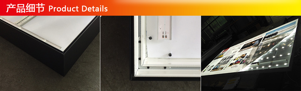燈箱系列: 無框卡布超薄單面燈箱 燈箱型號: 3800 換畫方式: 畫面縫硅膠條,直接更換畫面 燈箱厚度: 38mm 燈箱光源: 高亮度LED燈條 燈箱電源: LED超薄燈箱專用適配器 交流電壓: 110V-260V可定做 直流電壓: 12V 燈箱功率: 常規(guī)尺寸按參數(shù),定做按實際 燈箱亮度: 在配置最佳狀態(tài)是時可達4000Lux 節(jié)能效果: 采用側(cè)光LED,比普通熒光燈節(jié)能80% 安裝方式: 靠墻安裝 維護時間: 更換畫面僅需1-2分鐘即可 質(zhì)量保證: 燈箱整體質(zhì)保1年 畫面建議: 彈力布、紡織布、天花軟膜 使用場所: 戶內(nèi)